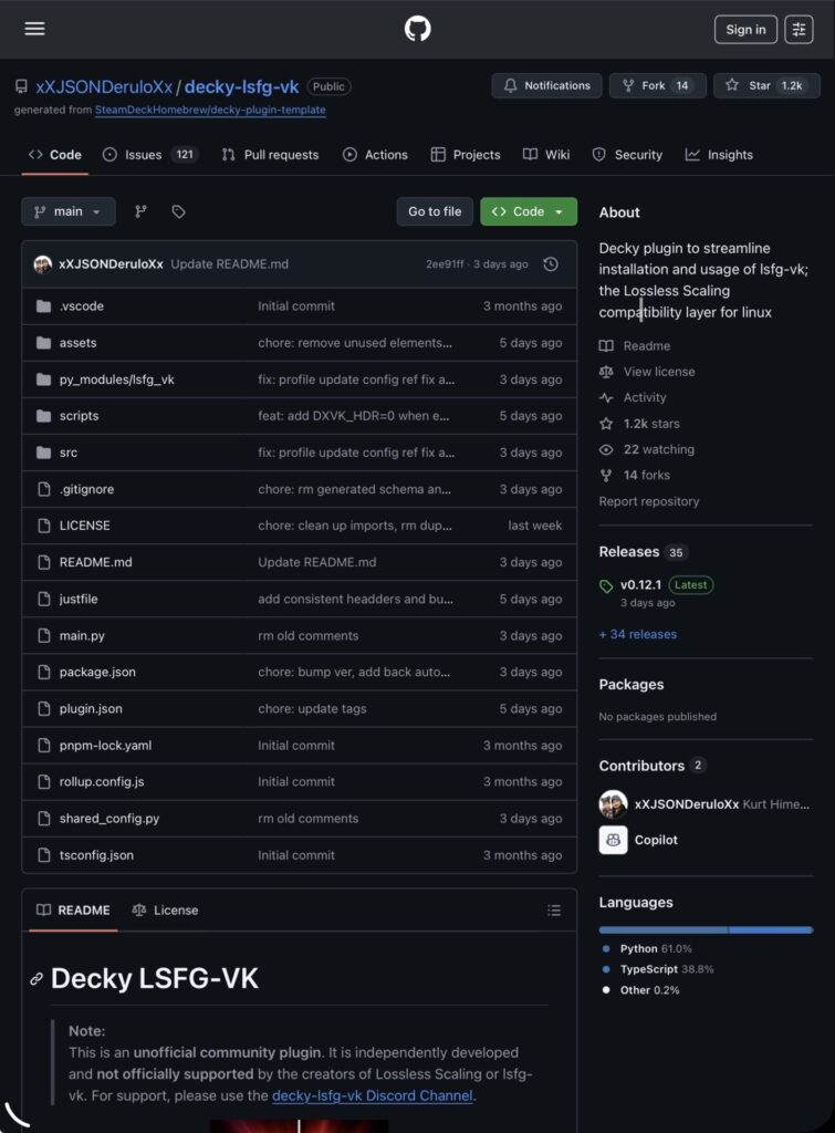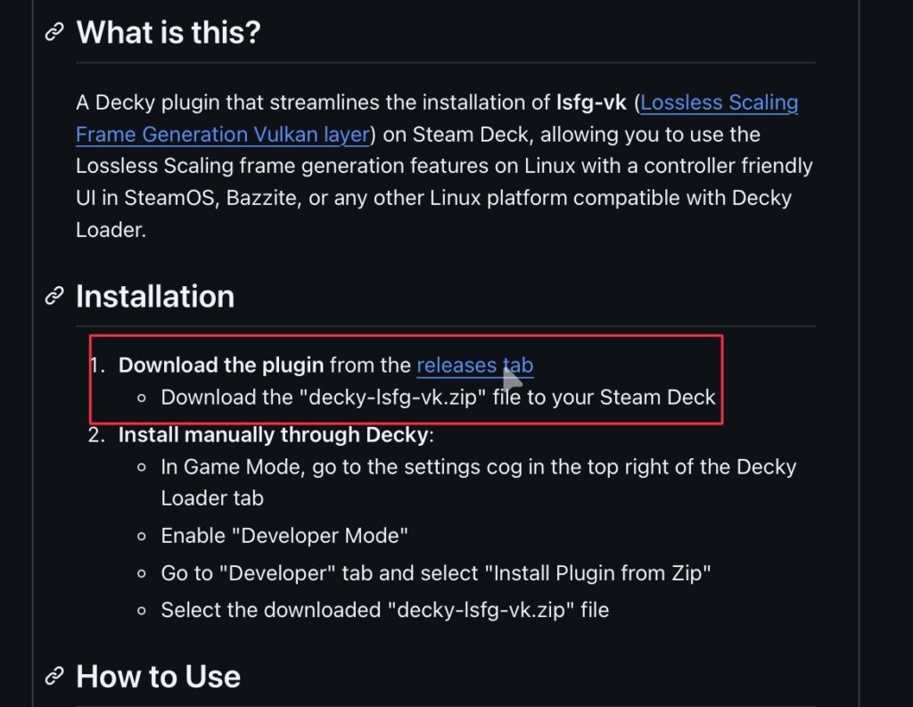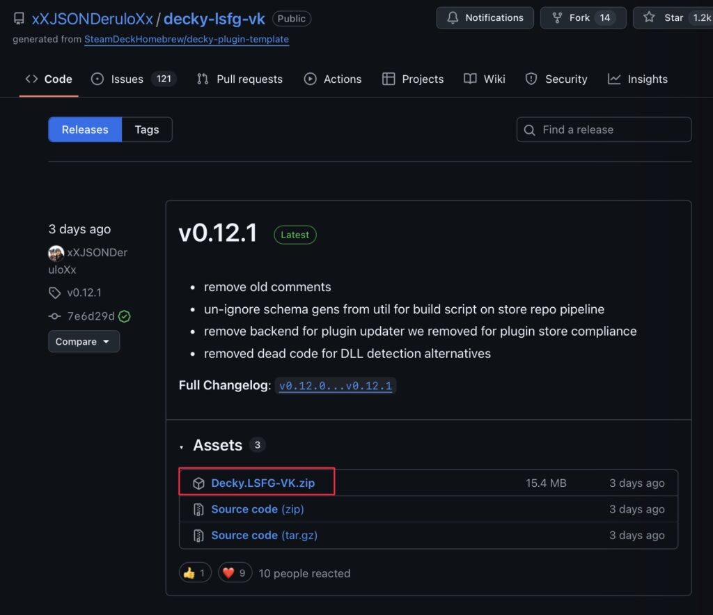 ⒋Decky-lsfg-vk.zipをダウンロードする。(解凍はしないこと)