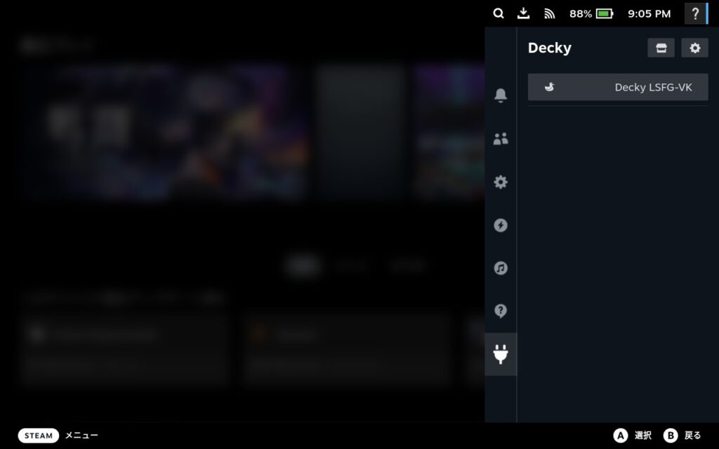 14.Decky Loaderに「Decky LSFG-VK」というアヒルみたいなアイコンが出現したらOK