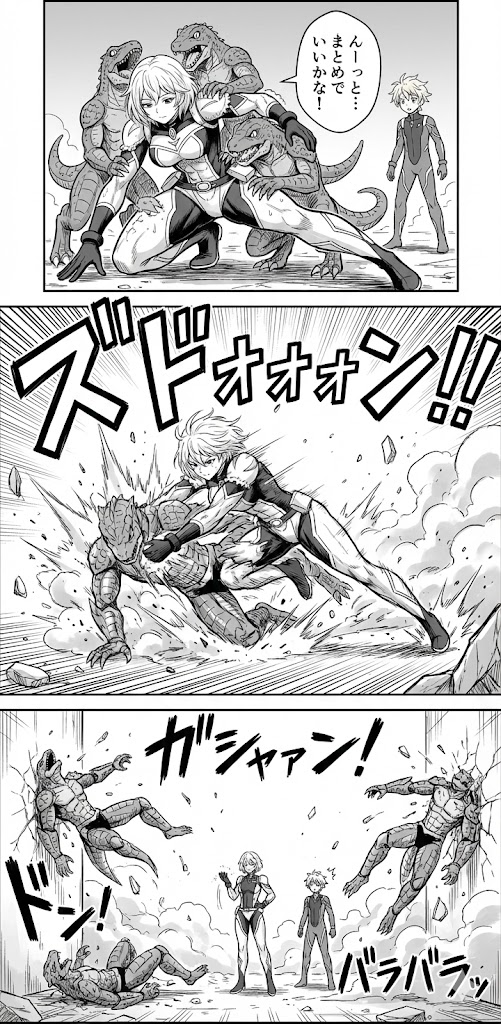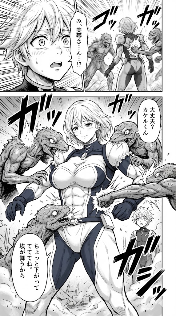 試しにうちの子変身ヒロイン達の戦闘訓練を自分が描いた絵をアップロードしながら描いてもらったんだけどこの完成度。