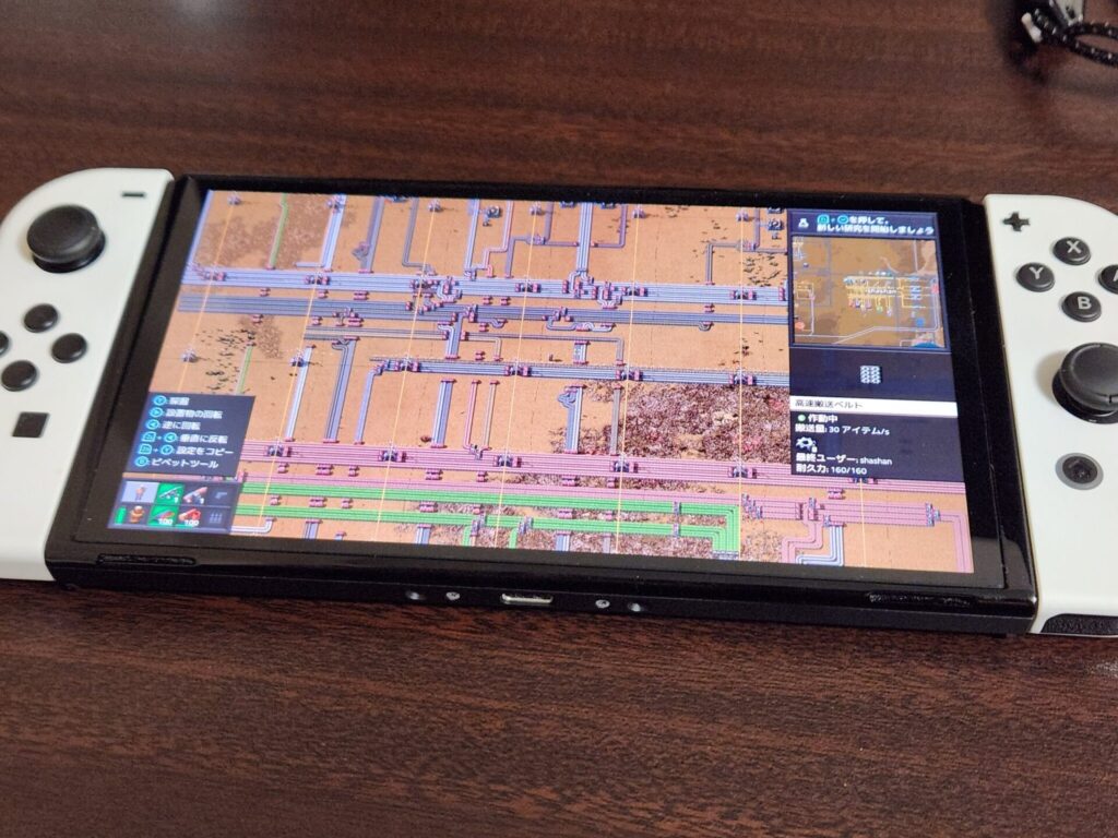 PC版と比べて削除されたりしょぼかったり我慢が必要な要素もなくなり(唯一MODぐらい)、マウスとコントローラの柔軟な使い分けで操作性も大幅改善、そしてどこでも遊べる携帯性とPCにもゲーミングUMPCにもない圧倒的なスリープの安定感、PC版の快適さ、自由度と初代スイッチ版の気軽さを両立していて、もはやFactorioのために生まれてきたゲーム機なのではないかとすら感じるほど親和性が高い。